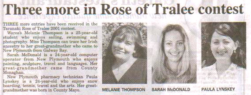 · 2001, March: Paula Lynskey - "Rose of Tralee Contestant"
