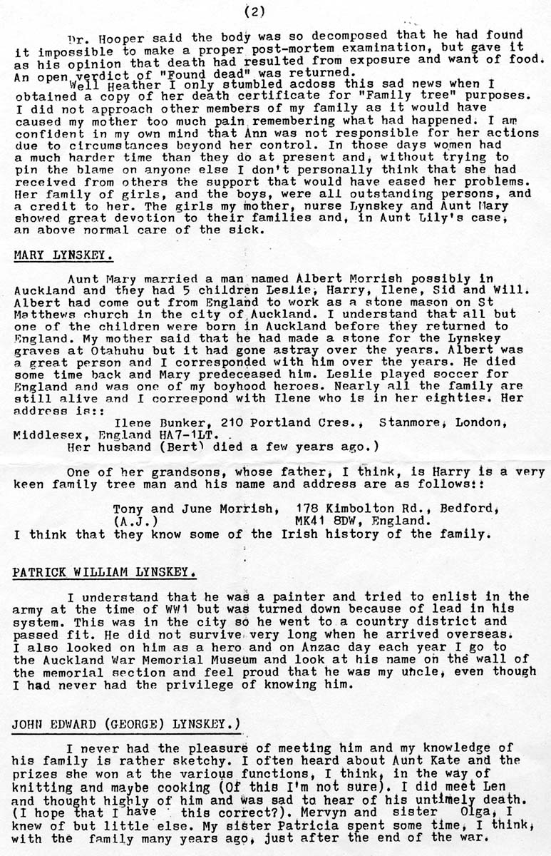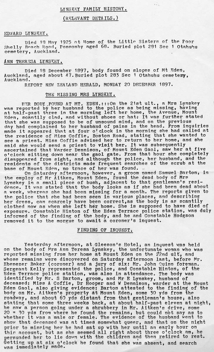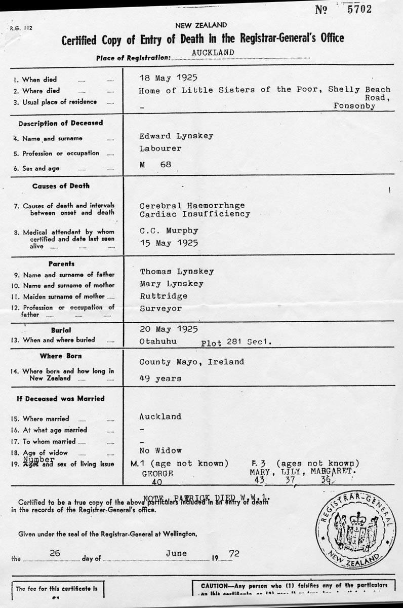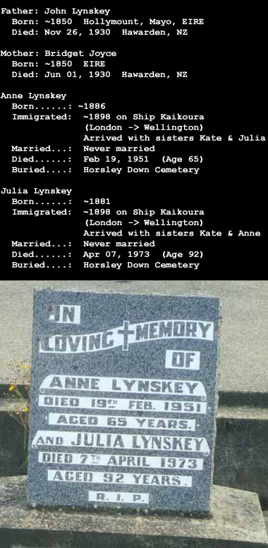 This page is dedicated to the Lynskey’s that migrated from Ireland to New Zealand.