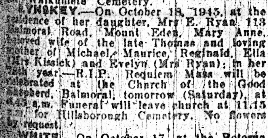 · 1943: Mary Anne McHugh Lynskey, death notice